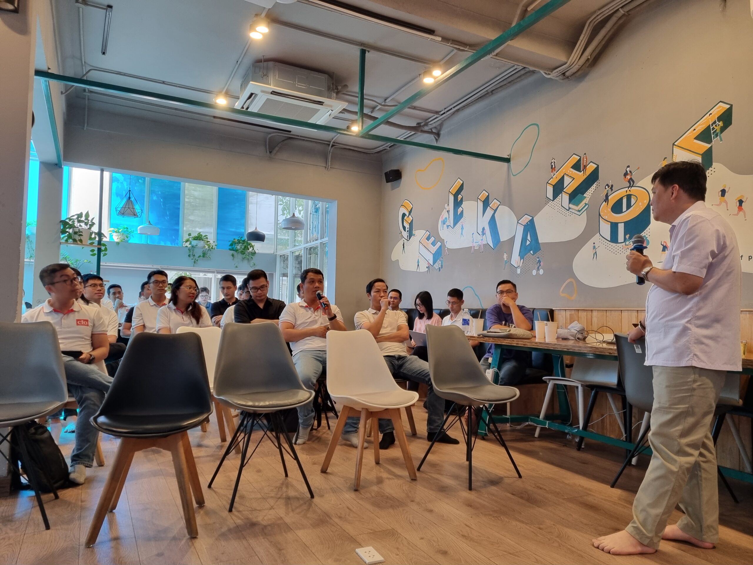 Sự kiện đã được tổ chức offline tại 2 địa điểm Hồ Chí Minh và Hà Nội với sự thích thú tìm tòi nhiều góc nhìn về chuyển đổi số và trang bị kiến thức toàn diện về Digital Transformation của các thành viên tham dự. Workshop đã diễn ra trong không khí rộn ràng và đầy hào hứng với sự dẫn dắt đầy năng lượng từ anh Vũ Mạnh Cường, hiện tại anh Cường đang đảm nhận vai trò Head of IT của công ty Wilmar CLV, đồng thời anh cũng là một trong những thành viên trong Ban cố vấn và Ban huấn luyện của chương trình huấn luyện “Hạt Giống Lãnh Đạo CNTT”.